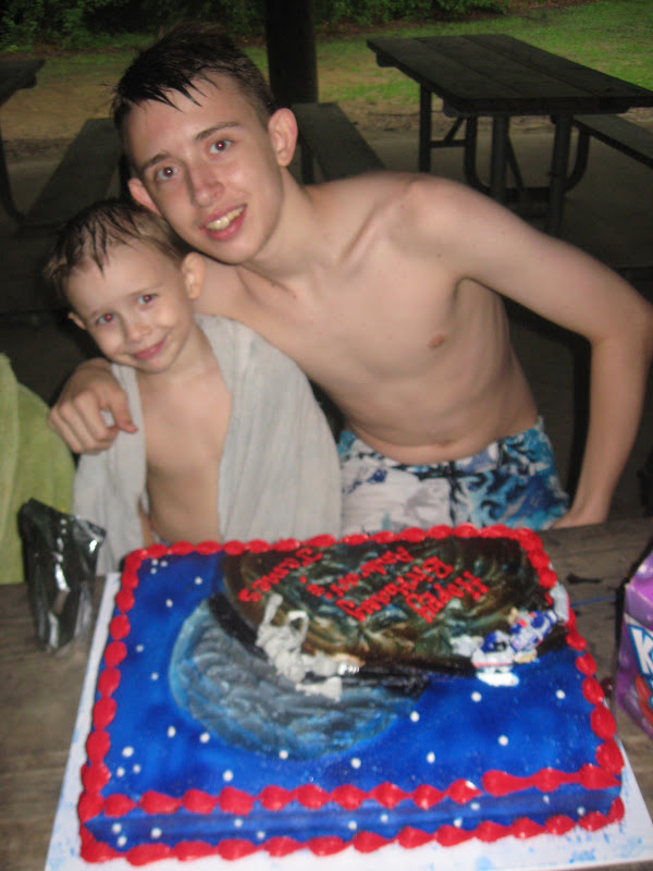 Brian and the kids decided to walk the 1 mile trail through the woods and Matthew and I drove the van with the food, cake and presents.